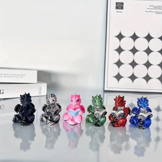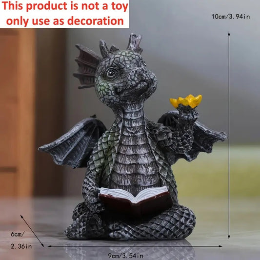 Sjarmerende Harpiks Drage Lesing Bok Figurin