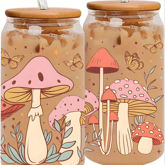 16.9oz Glass Tumbler featuring a Bamboo Lid and Straw.