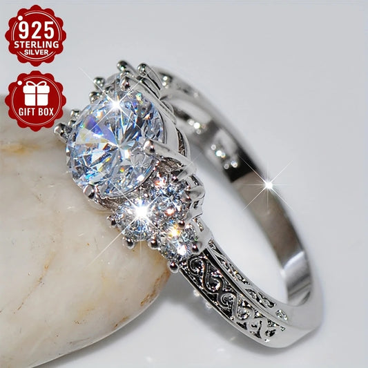 1pc 925 Rensilvert Luksus Halo Ring med Glitrende Rund CZ - Aprils Fødselsstein