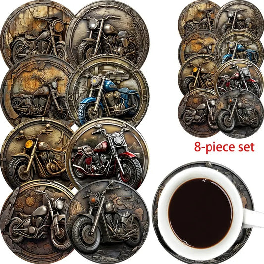 8pcs Set of Retro Motorcycle Wooden Coasters,