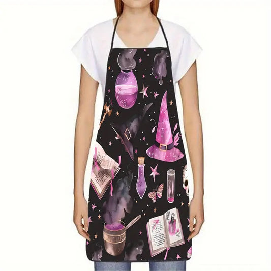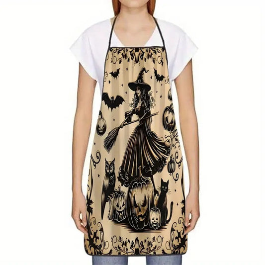 Witch, Broom & Pumpkins Halloween-Themed Polyester Apron