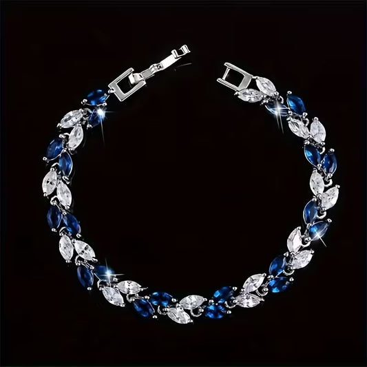 Elegant Four-Leaf Clover Design 18K Gold Plated Cubic Synthetic Zirconia Bracelet.
