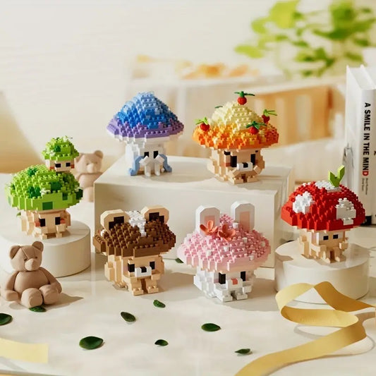 Cute Mushroom Series Tabletop Ornament Building Blocks.