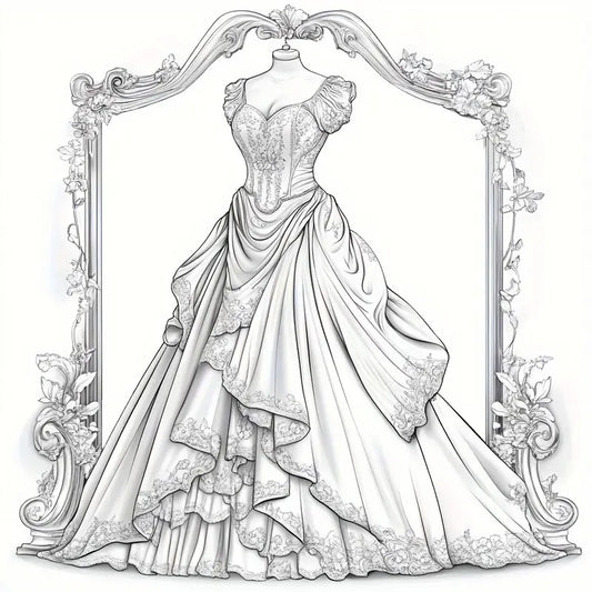 28-Page Adult Coloring Book featuring Dreamy Lady Outfit Designs.