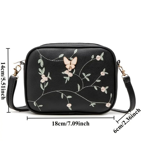 Brodert Blomster Crossbody-veske i Vegansk Skinn
