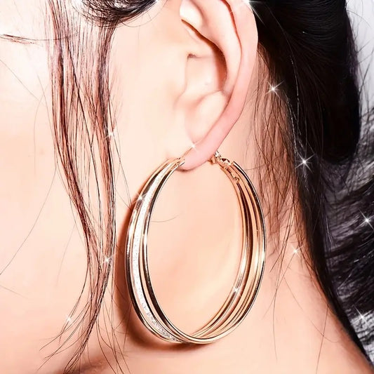 Flerlags Glitrende Hoop Øredobber Gyllen Tone