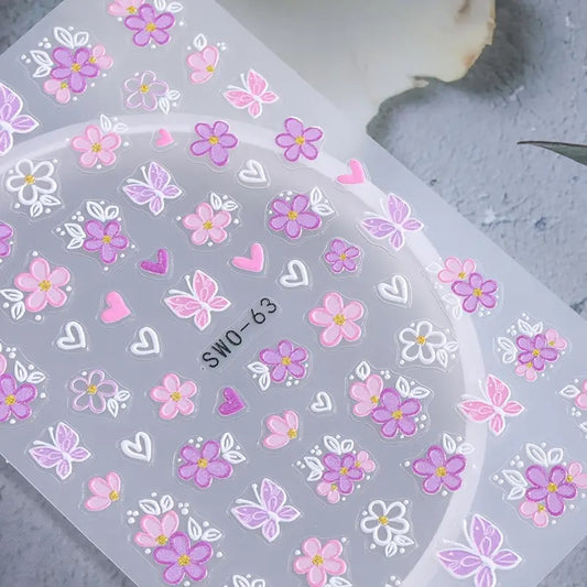 2 stk 5D Prægede Blomster Klistremerker