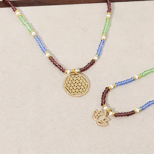 2-delt Bohemisk Krystallperle Lotus-pendelkjed