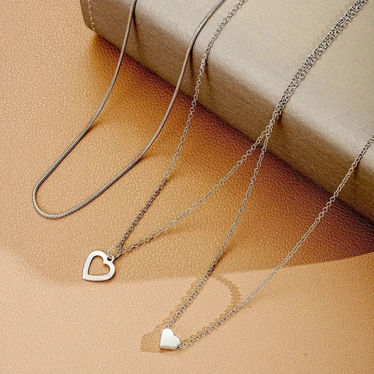 Sett Med 3 Enkle Hjertekjede Halskjeder