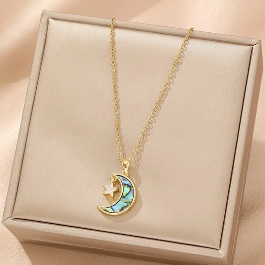 Elegant Måne & Stjerne Anheng Halskjede med Naturlige Skjelldetaljer