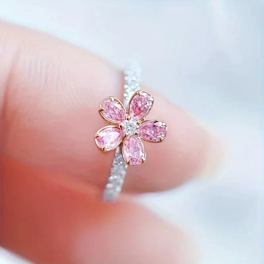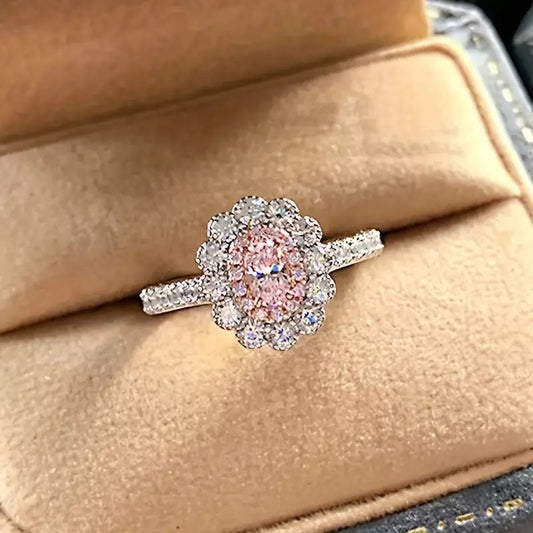 Sølvtone Elegant Ring med Glitrende Rosa Cubic Zirconia