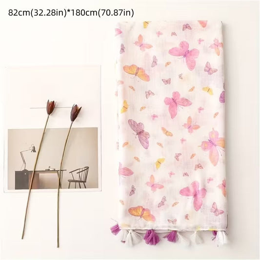 Bohemian Pink Gradient Butterfly Tassel Scarf