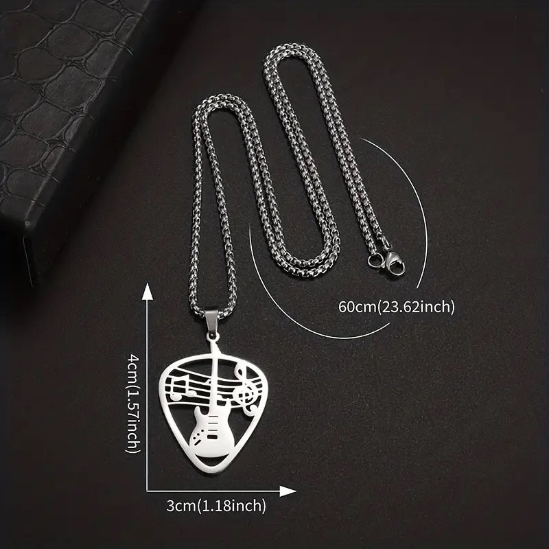 Rock your individual style with the Stainless Steel Punk Rock Guitar Pick & Music Note Pendant Necklace—a bold accessory designed for music lovers and edgy fashion enthusiasts alike.